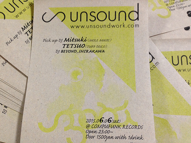 2015年5月7日 / 最終更新日時 : 2025年5月4日 unsound 未分類 2015.06.06 unsound 今回は、Mitsuki氏 (MOLE MUSIC)、TETSUO氏(TUFF DISCO)のお二人を迎えての開催です。遊びましょう! コメントを残す コメントをキャンセルメールアドレスが公開されることはありません。 ※ が付いている欄は必須項目ですコメント ※ 名前 ※ メール ※ サイト 次回のコメントで使用するためブラウザーに自分の名前、メールアドレス、サイトを保存する。